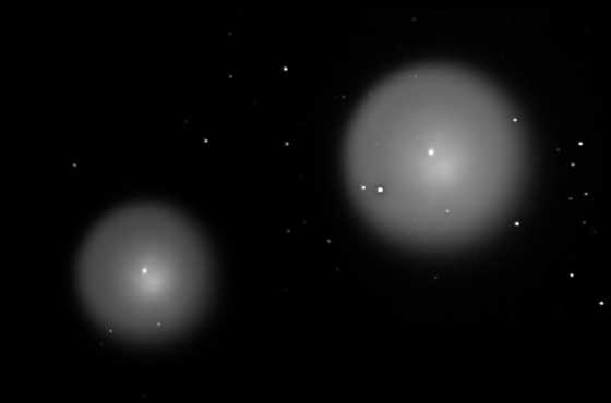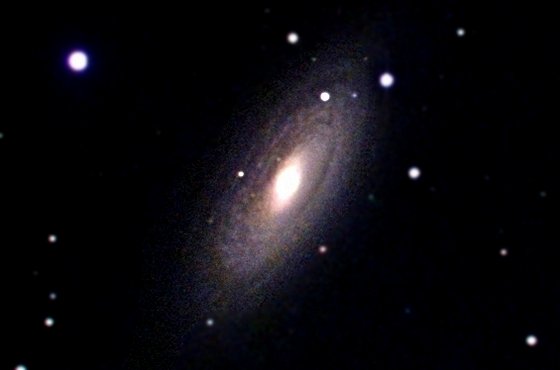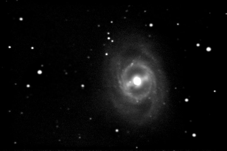 time of 1 hour 20 minutes. The images were aligned and stacked, and then contrast stretched. M64 is a barred