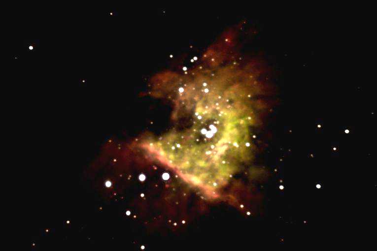 (28 September 2014) This picture combines a ten-minute exposure taken through Clear, H-alpha (red), Cousins-V (green)