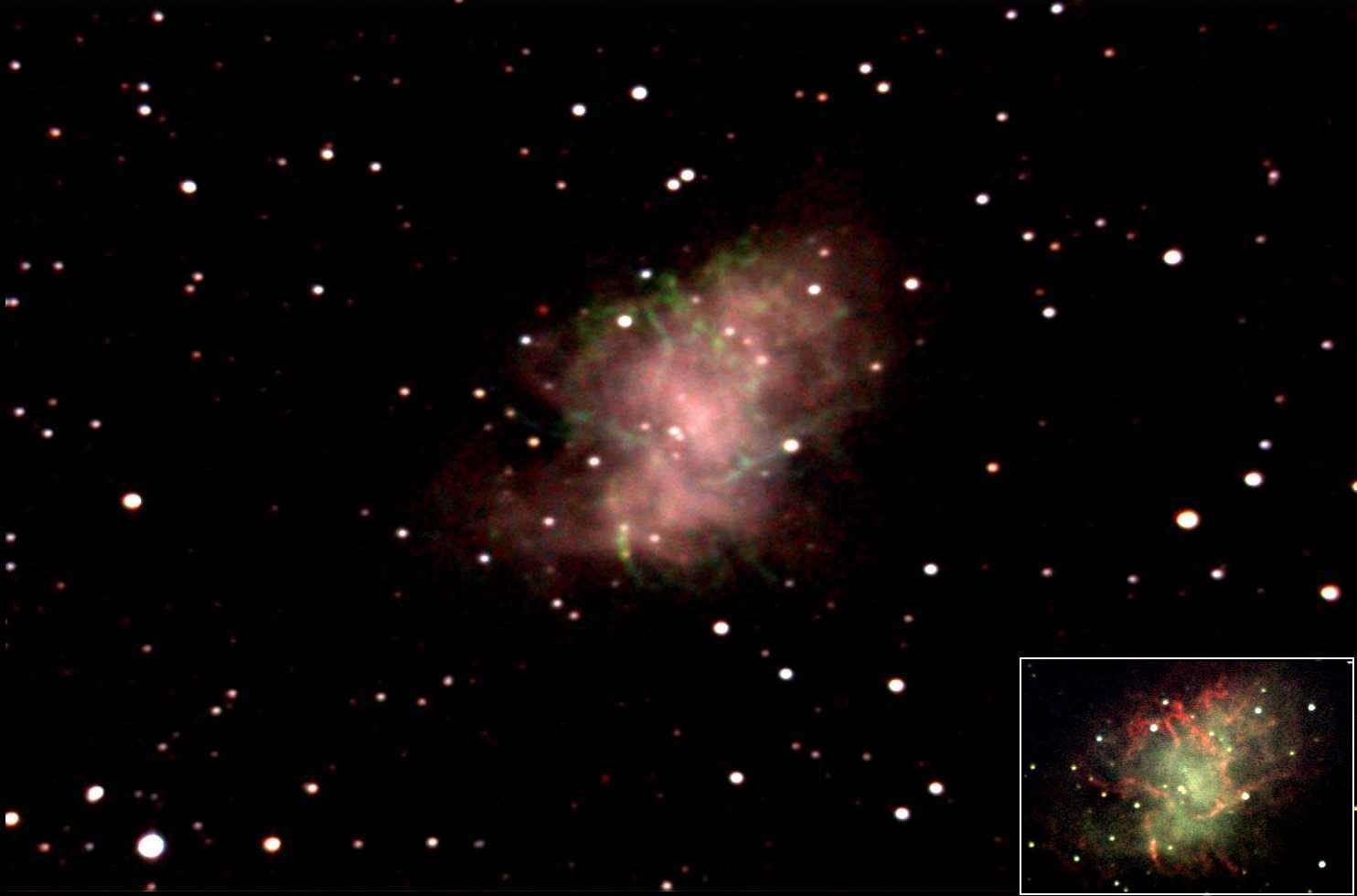 (16 January 2012) Eight images of the Crab Nebula were taken at 60 seconds apiece and stacked to