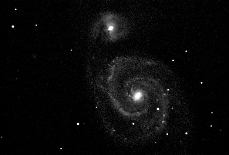 (22 May 2006) Here is another picture of M51 taken through a Red filter to produce a black-and-white image.
