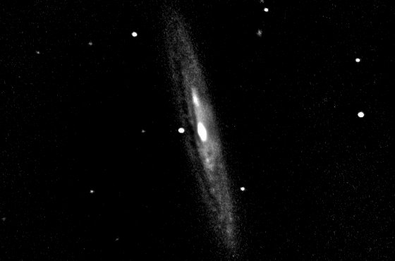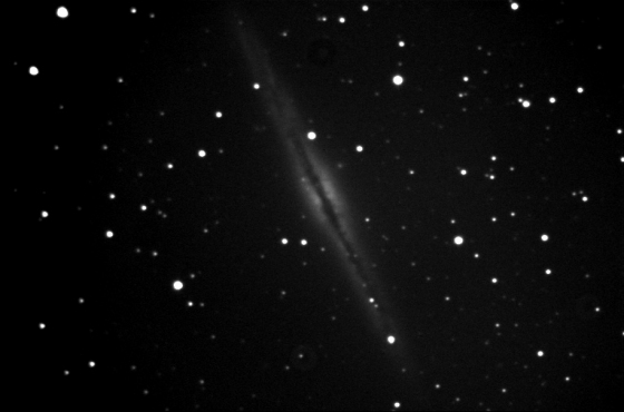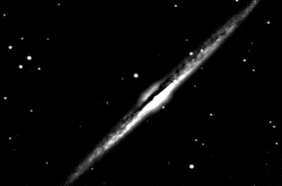 (28 February 2014) This edge-on spiral galaxy, not included in Charles Messier's famous catalog because he missed it, was first