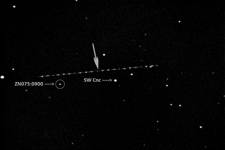motion in front of the Crab Nebula as I was taking these images. There are eight frames of 60