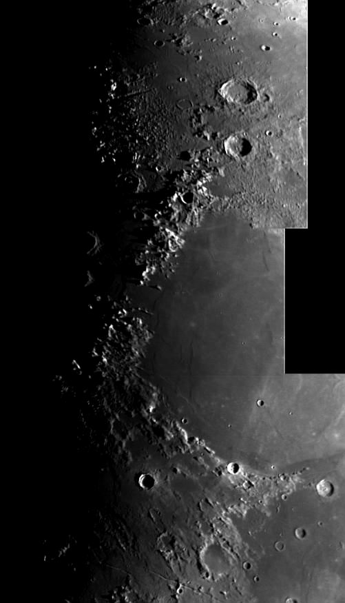 (14 Sep 2002) This is a mosaic of three single CCD images of the moon. The image covers the